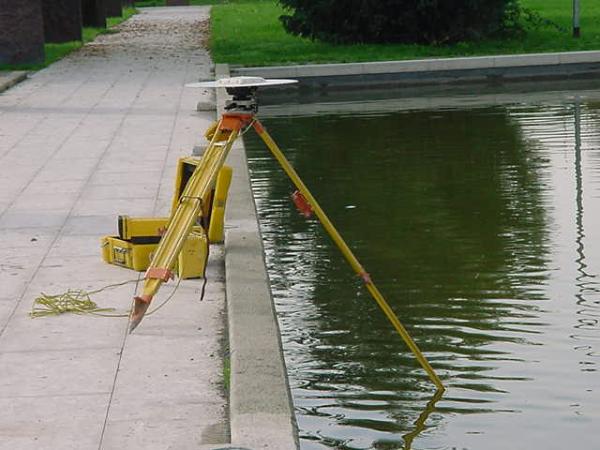 | materializzazione | Centrino universale GPS in acciaio inox infisso sul cordolo destro del ponticello in cemento armato che attraversa il laghetto situato nel piazzale di fronte alla chiesa di San Donato, in corrispondenza della scultura multipla inserita nel lato opporto del ponticello. |