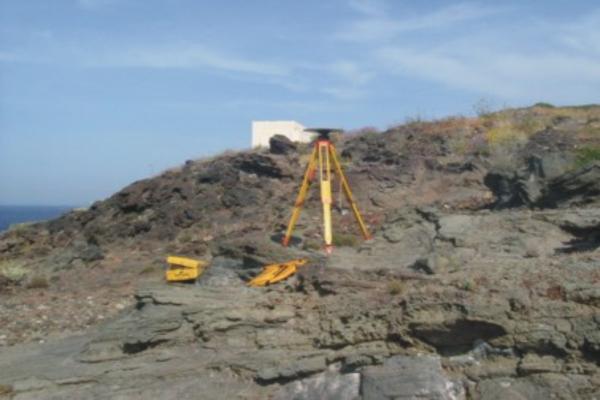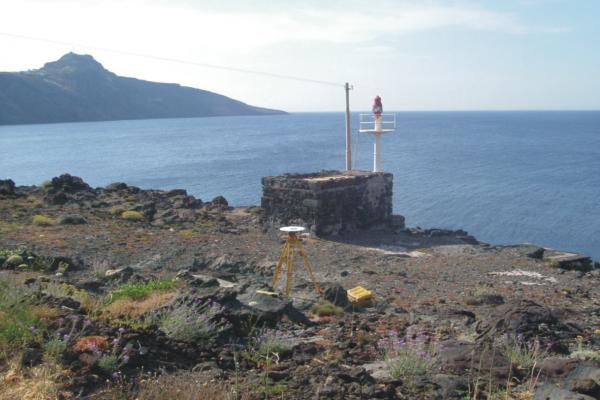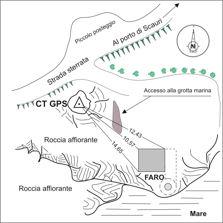 Centrino in acciaio inox del tipo "GPS C" infisso su roccia affiorante a nord-ovest del faro del Porto di Scauri.