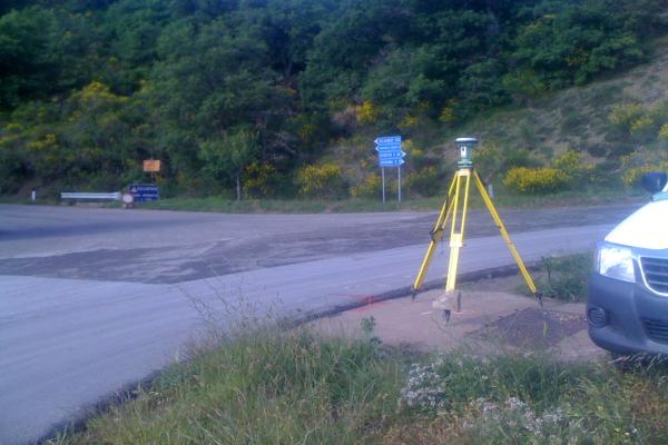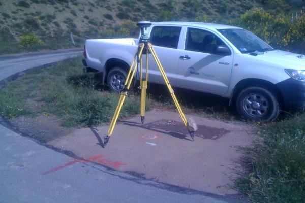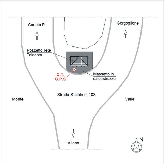 Centrino metallico orizzontale di tipo chiodo con rondella ARPAB Regione Basilicata infisso sulla sommità della piattaforma in cemento del pozzetto Telecom.