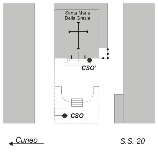 [{"simbolo_contrassegno":"B4","materializzazione":"(CSO) Chiodo GPS infisso ai bordi di un tombino per raccolta acqua a sinistra della scalinata della chiesa"},{"simbolo_contrassegno":"B3","materializzazione":"(CSO') Cerchio inciso sulla estremit\u00e0 destra del 1\u00b0 gradino, davanti alla porta d'ingresso della chiesa."}]