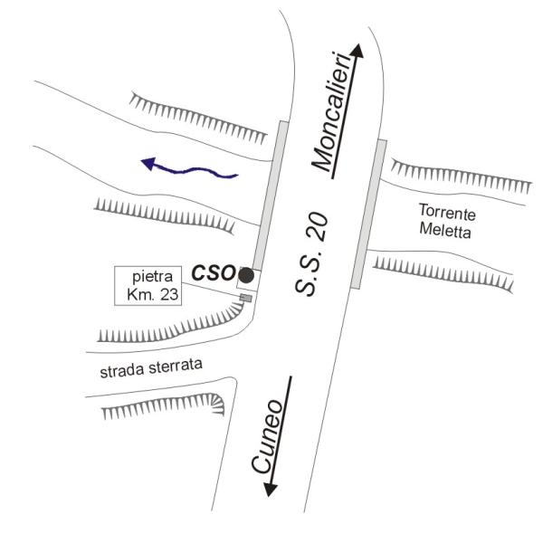 | Contrassegni | [{"simbolo_contrassegno":"B4","materializzazione":"(CSO) Chiodo GPS infisso su tombino della fognatura a destra in uscita dal ponte sul torrente Meletta percorrendo la S.S. n\u00b020 in direzione Cuneo"}] |