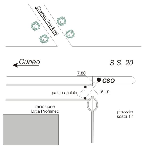 | Contrassegni | [{"simbolo_contrassegno":"B4","materializzazione":"(CSO) Chiodo GPS infisso su marciapiede in cls lato sinistro della S.S. n\u00b020 in direzione Cuneo davanti allo stabilimento PROFIL MEC in corrispondenza della strada per la cascina Tetti Botti, all'altezza del Km.26,450"}] |