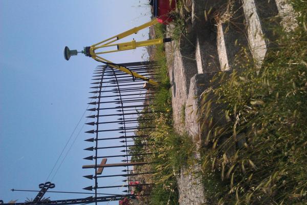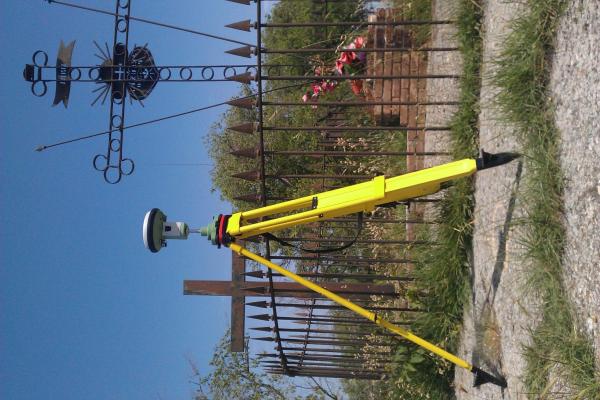 | materializzazione | Centrino metallico orizzontale di tipo chiodo con rondella ARPAB Regione Basilicata infisso sulla sommità del basamento in mattoni e C.L.S. monumento delle tre Croci. |
