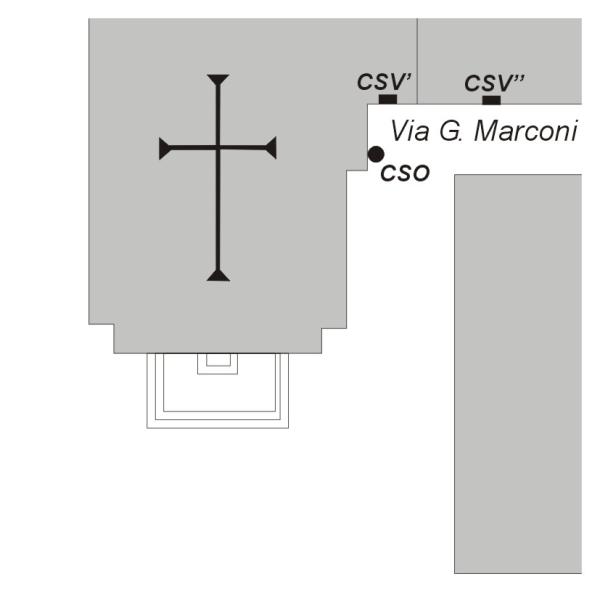 | Contrassegni | [{"simbolo_contrassegno":"B1","materializzazione":"(CSO) Bullone in ghisa cementato sulla facciata laterale destra del campanile"},{"simbolo_contrassegno":"V1","materializzazione":"(CSV') Mensola in ghisa cementata in prossimit\u00e0 dell'ingresso del campanile"},{"simbolo_contrassegno":"V3","materializzazione":"(CSV'') Targhetta cementata sul lato destro dell'ingresso recante civico n\u00b04"}] |