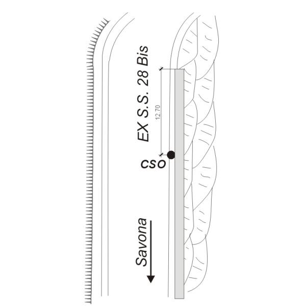 [{"simbolo_contrassegno":"B1","materializzazione":"(CSO) Bullone in ghisa cementato su muro di sostegno lato sinistro in direzione Savona a m 12.70 dall'inizio"}]
