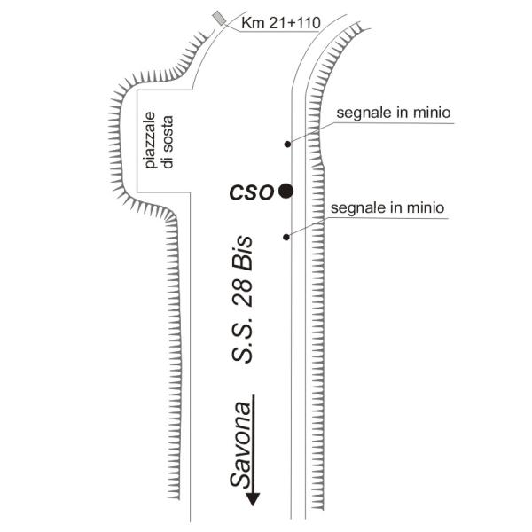 [{"simbolo_contrassegno":"B1","materializzazione":"(CSO) Bullone in ghisa cementato su cordolo in c.a. sul lato sinistro in direzione Savona di fronte ad una piazzola di sosta"}]