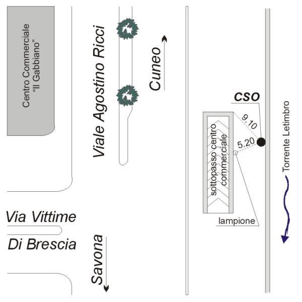 | Contrassegni | [{"simbolo_contrassegno":"B1","materializzazione":"(CSO) Bullone in ghisa cementato sul muro di delimitazione del torrente Letimbro, di fronte all'accesso carrabile del centro commerciale – lato nord"}] |