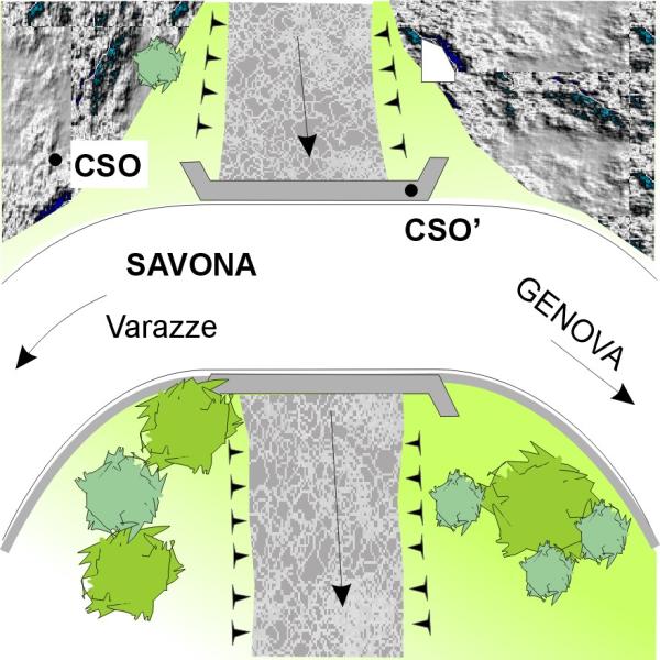 [{"simbolo_contrassegno":"B1","materializzazione":"(CSO) Bullone infisso su roccia all'altezza della stradina che conduce al ristorante Partigliolo."},{"simbolo_contrassegno":"B3","materializzazione":"(CSO') Cerchio inciso all'estremita del parapetto in calcestruzzo."}]