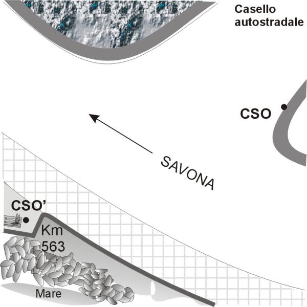 [{"simbolo_contrassegno":"B1","materializzazione":"(CSO) Bullone infisso nel muro di controripa al bivio per il casello autostradale di Celle ."},{"simbolo_contrassegno":"B4","materializzazione":"(CSO') Bulloncino tipo GPS infisso sul terrazzamento in affaccio sul mare, prossimo al Km 563."}]