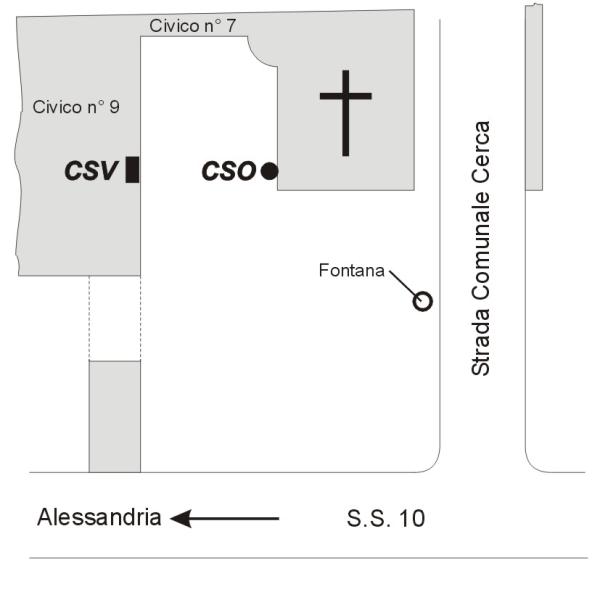 | Contrassegni | [{"simbolo_contrassegno":"P3","materializzazione":"(CSO) Pozzetto in ghisa posto alla base dello spigolo destro del fianco sinistro"},{"simbolo_contrassegno":"V1","materializzazione":"(CSV) Mensola infissa sulla casa di fronte al CSO"}] |