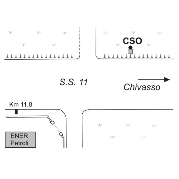 [{"simbolo_contrassegno":"B1","materializzazione":"(CSO) Bullone infisso sulla faccia esterna di un blocco in c.a. sul lato sinistro della strada in direzione di Chivasso."}]