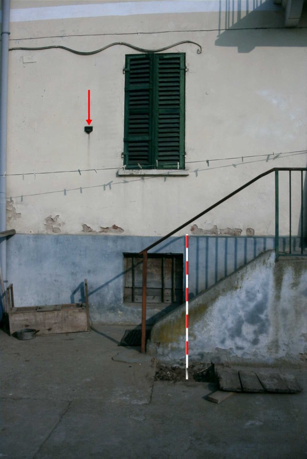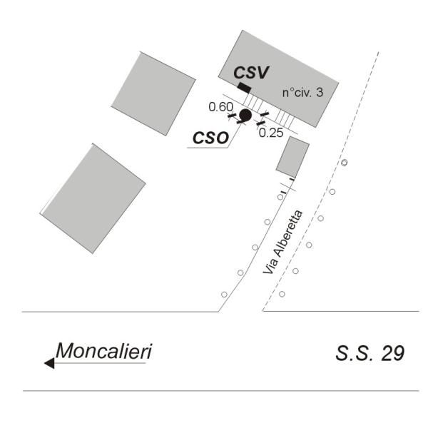 | Contrassegni | [{"simbolo_contrassegno":"P3","materializzazione":"(CSO) Pozzetto in ghisa posto alla base della rampa di sinistra della scala esterna del fabbricato al civico n\u00b03"},{"simbolo_contrassegno":"V1","materializzazione":"(CSV) Mensola infissa sulla facciata del fabbricato a sinistra della scala esterna, oltre la finestra"}] |