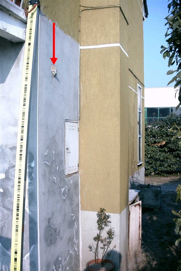 [{"simbolo_contrassegno":"P3","materializzazione":"(CSO) Pozzetto in ghisa posto alla base dello spigolo destro della facciata di sinistra guardando la casa dalla statale"},{"simbolo_contrassegno":"V1","materializzazione":"(CSV) Mensola infissa presso lo spigolo sinistro della facciata di sinistra guardando la casa dalla statale"}]