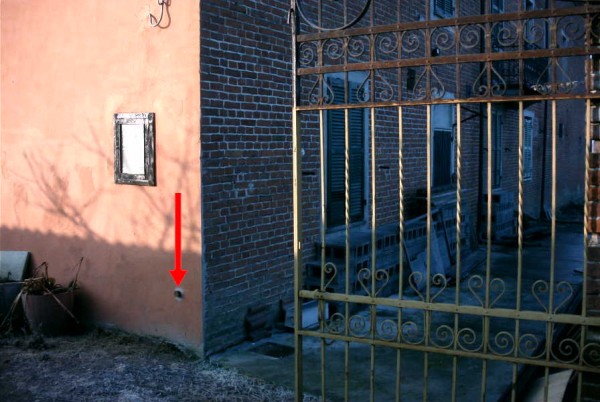 | Contrassegni | [{"simbolo_contrassegno":"B1","materializzazione":"(CSO) Bullone in ghisa infisso presso lo spigolo destro della facciata est del fabbricato."}] |