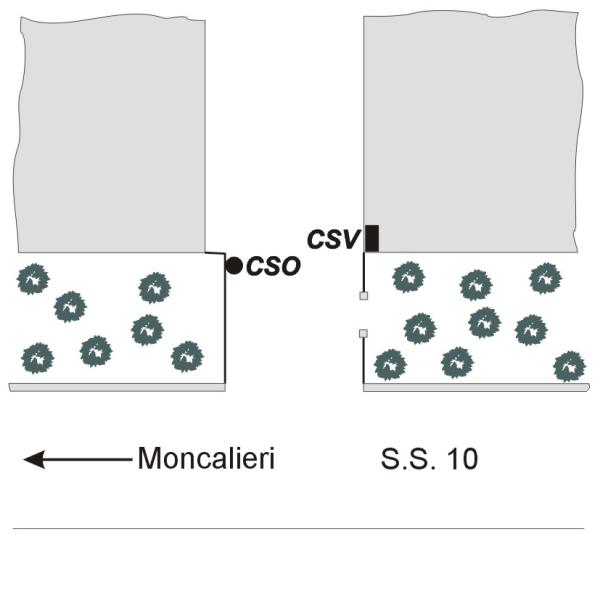 [{"simbolo_contrassegno":"P3","materializzazione":"(CSO) Pozzetto in ghisa posto alla base del muro di recinzione, nei pressi dello spigolo sud-est dell'abitazione civ.51."},{"simbolo_contrassegno":"V1","materializzazione":"(CSV) Mensola infissa nella facciata ovest di fronte al cso, presso lo spigolo di destra, del fabbricato laterale al civ. 51."}]
