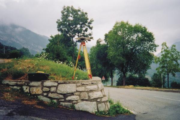 | materializzazione | Centrino GPS da livellazione in acciaio inox infisso sulla sommità del muro di contenimento. |