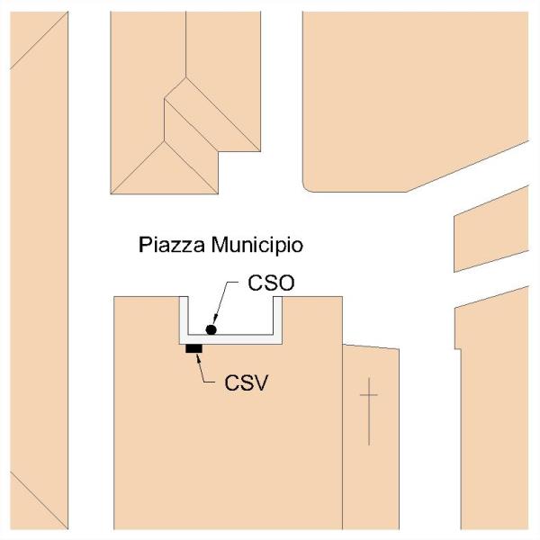 | Contrassegni | [{"simbolo_contrassegno":"P2","materializzazione":"(CSO) – Chiusino in ghisa posto alla base delle due colonne di destra del balcone."},{"simbolo_contrassegno":"V1","materializzazione":"(CSV) – Mensola infissa sulla facciata, nel sottoportico del Municipio, a destra della porta dell'Ufficio Anagrafe al numero civico 6."}] |