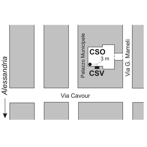 | Contrassegni | [{"simbolo_contrassegno":"P2","materializzazione":"(CSO) Pozzetto interrato all'interno del cortile del Municipio, alla base del muro nell'angolo N.O. del cortile."},{"simbolo_contrassegno":"V1","materializzazione":"(CSV) Mensola infissa sul muro suddetto, a circa 3 m dal CSO."}] |