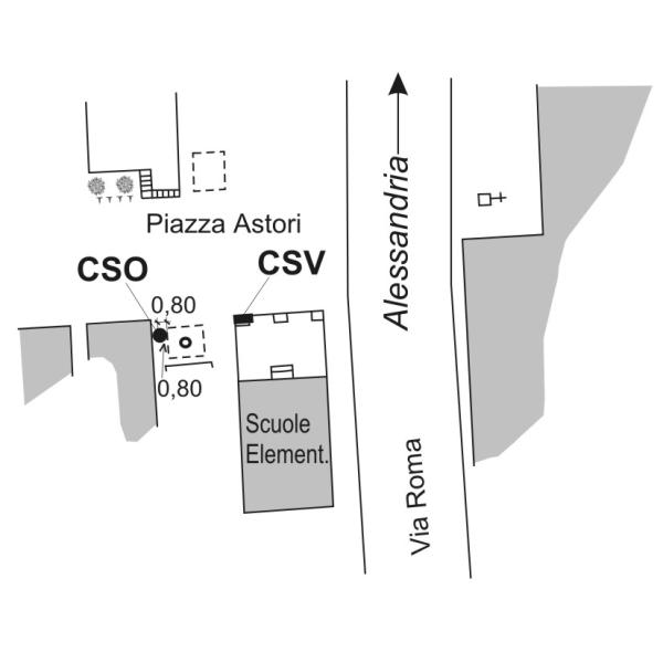 [{"simbolo_contrassegno":"P3","materializzazione":"(CSO) Pozzetto in ghisa alla base del Monumento ai Caduti della Guerra 15-18, lato di destra, a circa cm 80 dallo spigolo sinistro.(2006:momentaneamente interrato)."},{"simbolo_contrassegno":"V1","materializzazione":"(CSV) Mensola sulla facciata del fabbricato, pilastro di destra."}]
