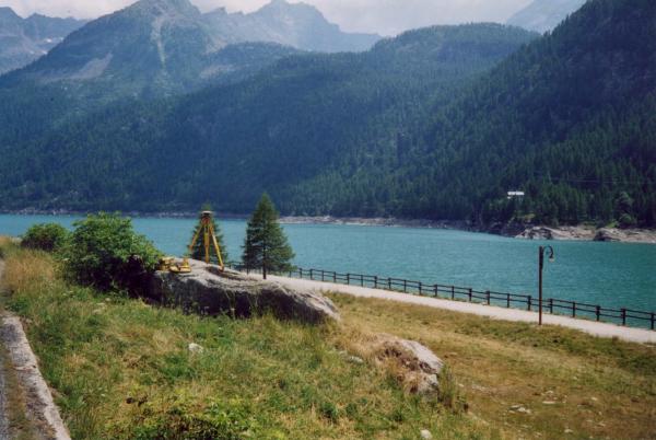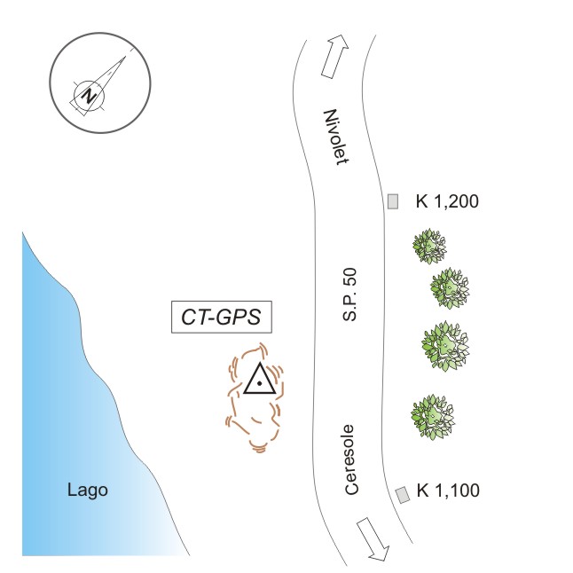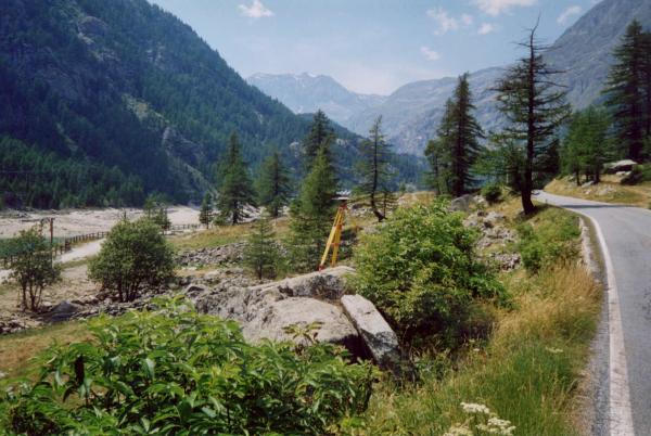 Centrino universale GPS in acciaio inox infisso sulla sommità del grosso masso tra la S.P. 50 ed il lago di Ceresole.