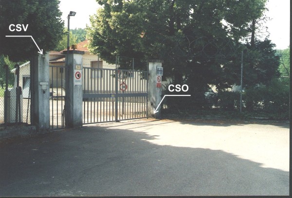 [{"simbolo_contrassegno":"B1","materializzazione":"(CSO) Bullone murato nella base del lato sinistro del pilastro di destra dell'ingresso carrabile."},{"simbolo_contrassegno":"V1","materializzazione":"(CSV) Mensola infissa nel lato verso la strada del pilastro di sinistra dell'ingresso pedonale."}]