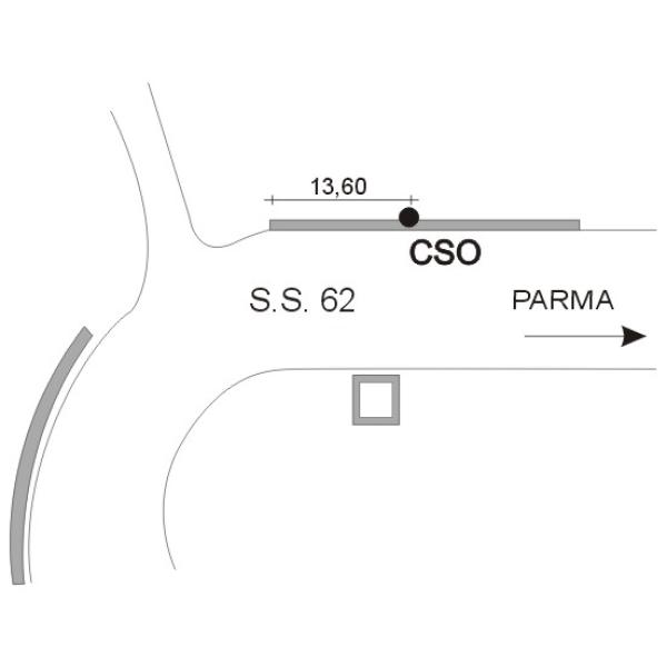 | Contrassegni | [{"simbolo_contrassegno":"B2","materializzazione":"(CSO) Chiodo tipo anonimo cementato sulla spalletta del tombino a sinistra della strada, in direzione Parma."}] |