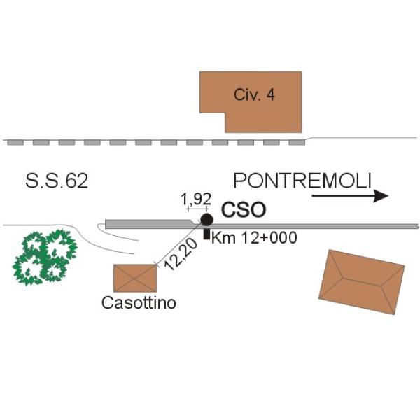| Contrassegni | [{"simbolo_contrassegno":"B1","materializzazione":"(CSO) Bullone infisso nel muro di sostegno di sottoscarpa, a destra della strada in corrispondenza del km 12+000."}] |
