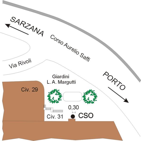 | Contrassegni | [{"simbolo_contrassegno":"P5","materializzazione":"(CSO) Pozzetto protetto da tubo in plastica e coperto da tappo in ghisa cementato in corrispondenza dello spigolo sinistro dell'avancorpo del fabbricato."}] |
