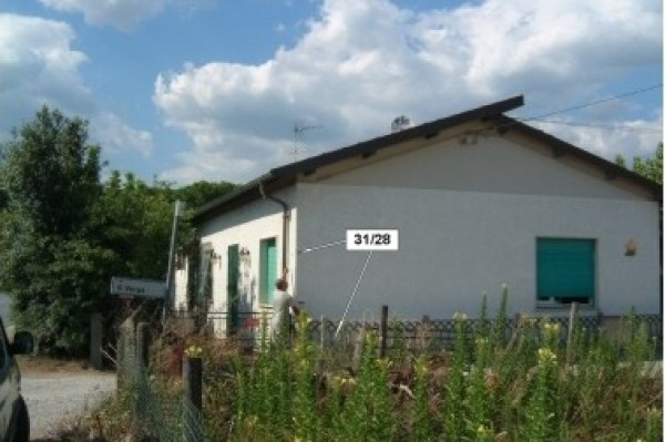 | Contrassegni | [{"simbolo_contrassegno":"P3","materializzazione":"(CSO) Chiusino in ghisa di III Categoria alla base della parete laterale destra a 0,70 m dallo spigolo anteriore, protetto da un coperchio in cemento"},{"simbolo_contrassegno":"V1","materializzazione":"(CSV) Mensola infissa sulla facciata presso lo spigolo destro"}] |