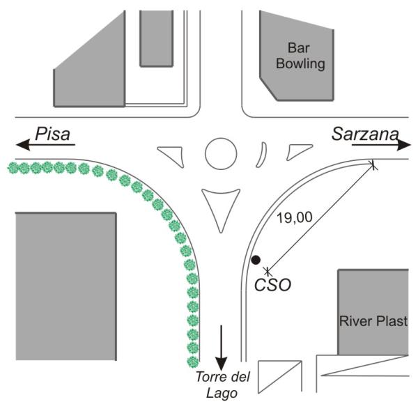 | Contrassegni | [{"simbolo_contrassegno":"B1","materializzazione":"(CSO) Bullone infisso nel lato interno del cordolo in cemento del guardrail a sinistra della strada che conduce a torre del lago e alle uscite autostradali, di fronte al palasport, Bowling \"Viareggio\""}] |
