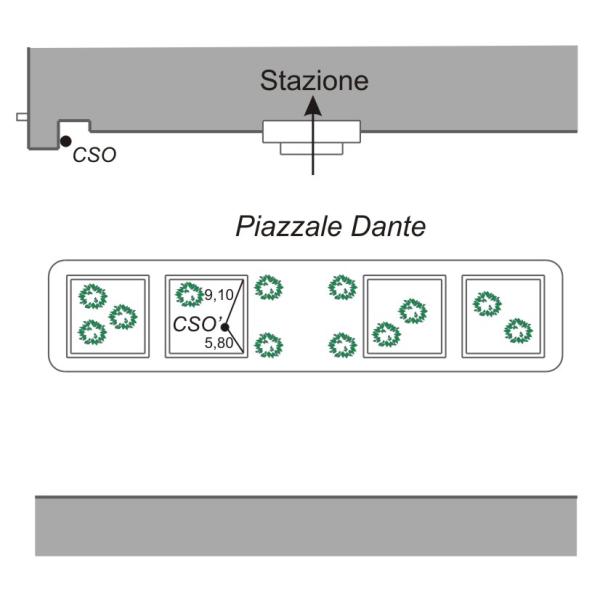 | Contrassegni | [{"simbolo_contrassegno":"B1","materializzazione":"(CSO) Bullone infisso allo spigolo sinistro, lato destro dell'avancorpo senza rivestimento in marmo a sinistra della stazione FS"},{"simbolo_contrassegno":"P3","materializzazione":"(CSO') Chiusino in ghisa di III Categoria rialzato di 0.20 m e protetto da tappo di ghisa, situato nella grande aiuola di sinistra guardando l'ingresso principale della stazione (A: non misurabile)"}] |