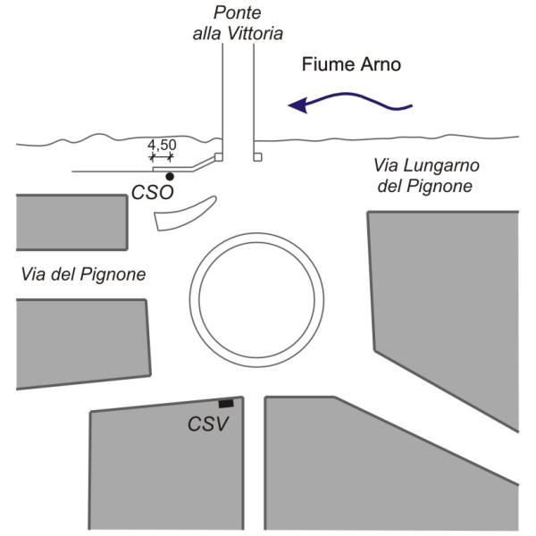 | Contrassegni | [{"simbolo_contrassegno":"P3","materializzazione":"(CSO) Chiusino in ghisa di III\u00b0 Categoria sito sul marciapiede a destra di Largo del Pignone, presso l'angolo ottuso a 4,50 m dal palo della luce e a 2 m dalla spalletta del ponte"},{"simbolo_contrassegno":"V2","materializzazione":"(CSV) Piastrina a barilotto infissa sulla facciata della casa con \"Bar Cappelli\" di fronte al ponte, angolo con Via del Ponte Sospeso"}] |