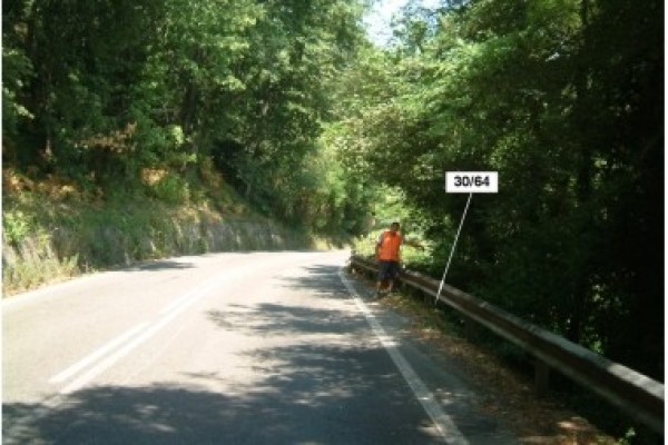 | Contrassegni | [{"simbolo_contrassegno":"B1","materializzazione":"(CSO) Bullone infisso nel muro di sottoscarpa a 1,60 m dal doppio guardrail che \u00e8 presente nella doppia curva"}] |