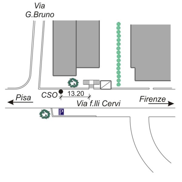 | Contrassegni | [{"simbolo_contrassegno":"B1","materializzazione":"(CSO) Bullone infisso nel muro in pietra a sinistra della strada (verso Firenze) e a destra del cancelletto di ingresso del condominio ai numeri civici dal 182 al 188, in Via Fratelli Cervi"}] |