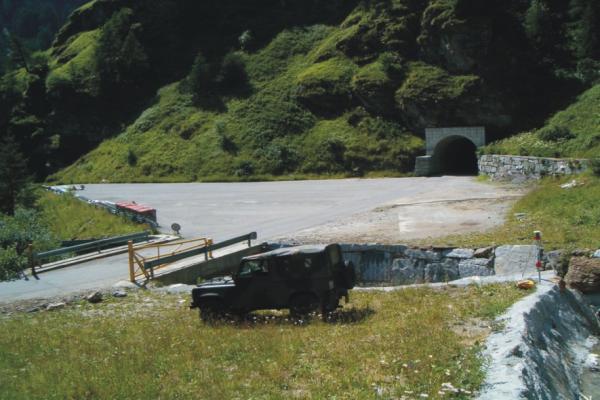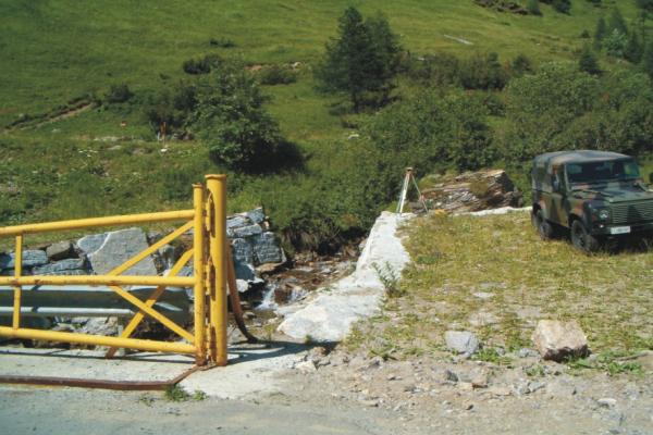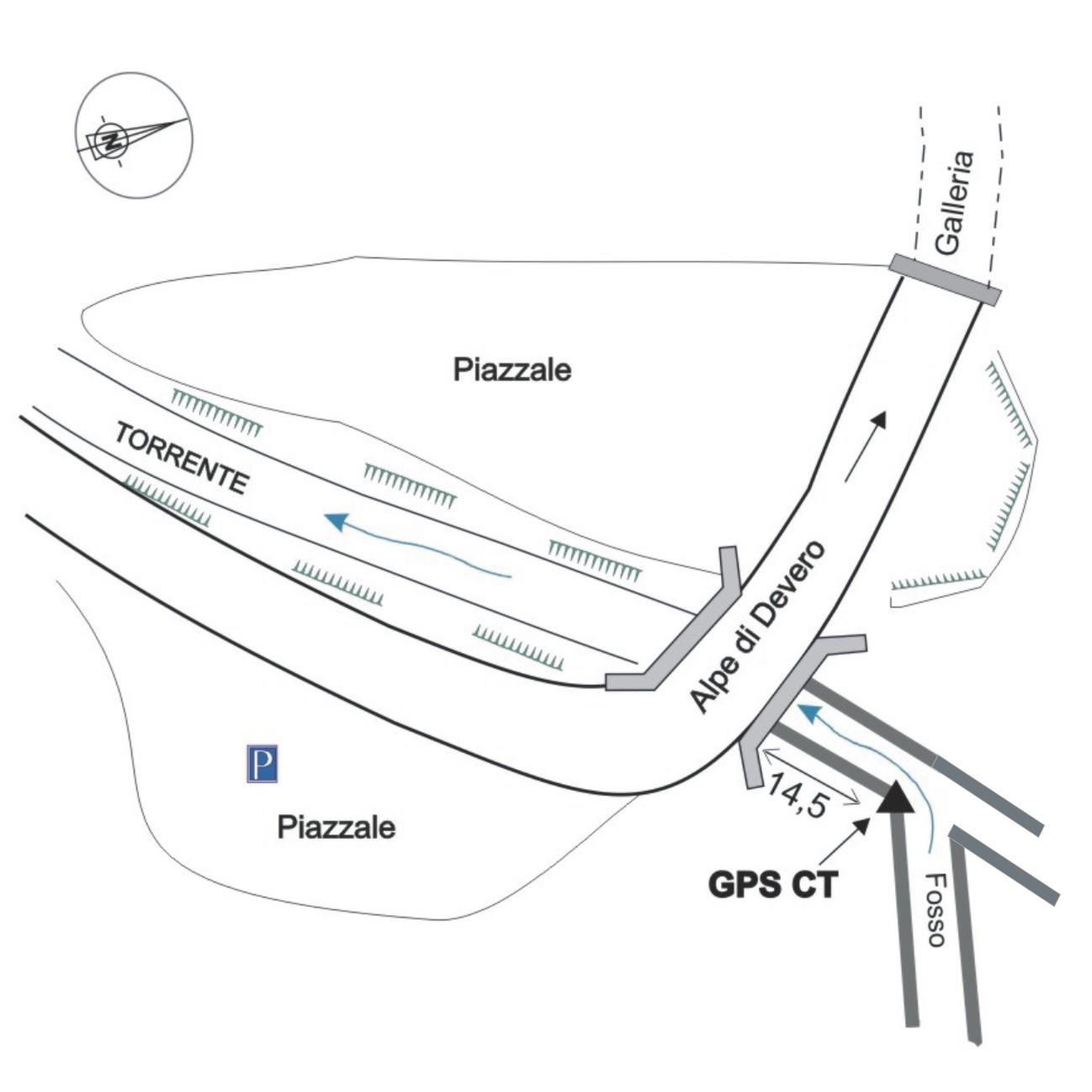 Centrino in acciaio inox del tipo "GPS C" infisso sulla sponda artificiale in pietra e cemento di un fosso.