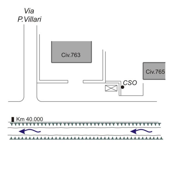 [{"simbolo_contrassegno":"B1","materializzazione":"(CSO) Bullone infisso nel muro di contenimento laterale in cemento armato della cabina del metano posta all'altezza del civico n. 763 di Via Tosco Romagnola Est"}]