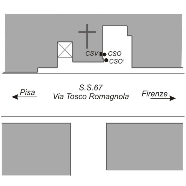 [{"simbolo_contrassegno":"B1","materializzazione":"(CSO) Bullone infisso nella parete della chiesa a destra del CSO'"},{"simbolo_contrassegno":"P3","materializzazione":"CSO') Chiusino in ghisa III\u00b0 Categoria posto alla base del muro laterale destro, presso lo spigolo di sinistra, coperto da mattoncini rossi"},{"simbolo_contrassegno":"V1","materializzazione":"(CSV) Mensola infissa in corrispondenza del CSO'"}]