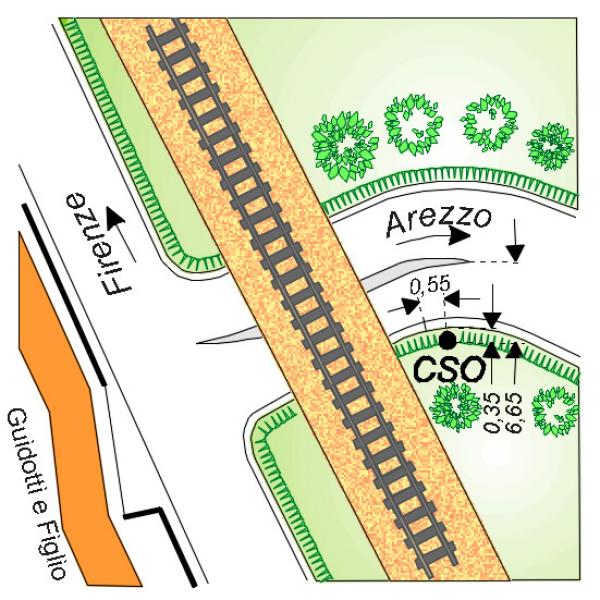 [{"simbolo_contrassegno":"P5","materializzazione":"(CSO) Pozzetto rialzato con tubo di cemento posto alla base della scarpata ferroviaria, sopra il muro di controripa, a m 0,55 dal muro d'ala del sottopassaggio sinistro procedendo verso Firenze."}]