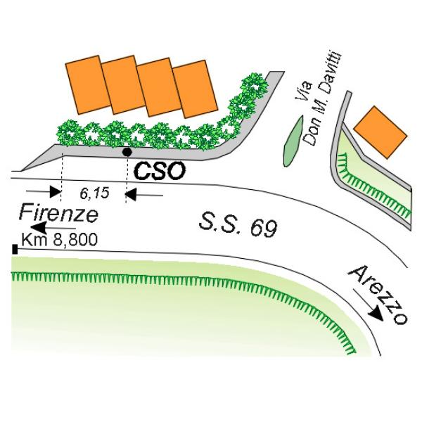 | Contrassegni | [{"simbolo_contrassegno":"B4","materializzazione":"(CSO) Bulloncino inox infisso sulla parte superiore del muro in c.a. posto sul lato destro della strada procedendo verso Firenze in corrispondenza dell'incrocio della S.S. 69 con la Via Don M. Davitti."}] |