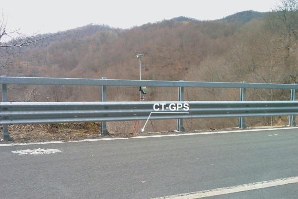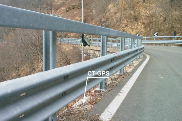 | materializzazione | Centrino in acciaio inox del tipo GPS da livellazione fissato sul muro di sostegno in cemento a valle della strada. |