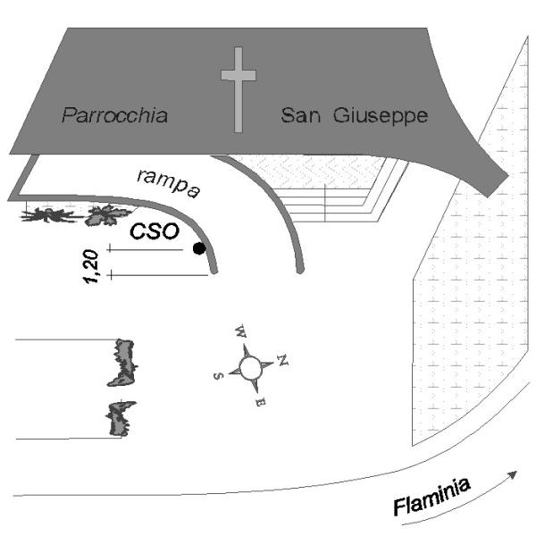 [{"simbolo_contrassegno":"B1","materializzazione":"(CSO) Sul muro in calcestruzzo delimitante la rampa antistante la chiesa"}]