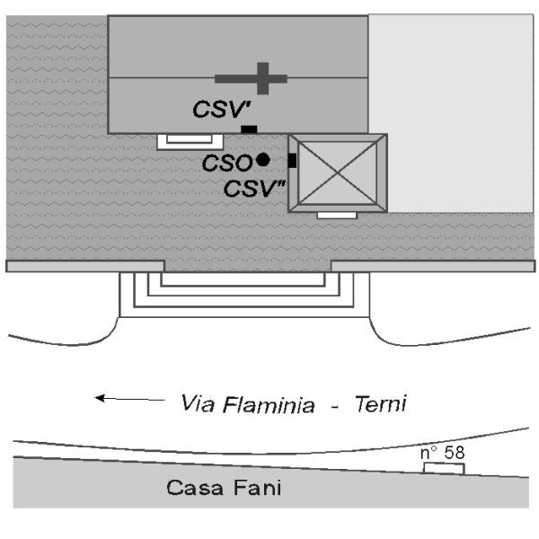 | Contrassegni | [{"simbolo_contrassegno":"P2","materializzazione":"(CSO) Nell'angolo fra il muro Nord del campanile e la facciata lato strada della chiesa. Coperto con coperchio in calcestruzzo"},{"simbolo_contrassegno":"V1","materializzazione":"(CSV) Mensola sulla facciata, lato strada, della chiesa, a destra della porta d'entrata"},{"simbolo_contrassegno":"V3","materializzazione":"(CSV') Piastrina sul muro Nord, inclinato, alla base del campanile in corrispondenza del pozzetto"}] |