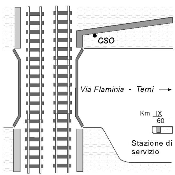 [{"simbolo_contrassegno":"B1","materializzazione":"(CSO) Alla base del muro di contenimento della scarpata destra in direzione di Roma, subito prima del ponte della ferrovia"}]