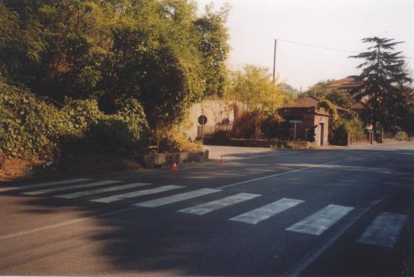 | Materializzazione | Centrino in acciaio inox del tipo GPS da livellazione infisso alla sommità di un tombino in cemento, a margine della strada. |