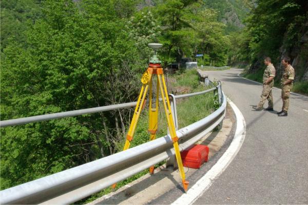 Centrino in acciaio inox del tipo GPS da livellazione infisso sul cordolo del ponticello lato valle, a 47,85 m dalla tabella ettometrica Km 14,500 e a 16,10 m dal cso, anche questo materializzato con centrino in acciaio inox del tipo GPS da livellazione.