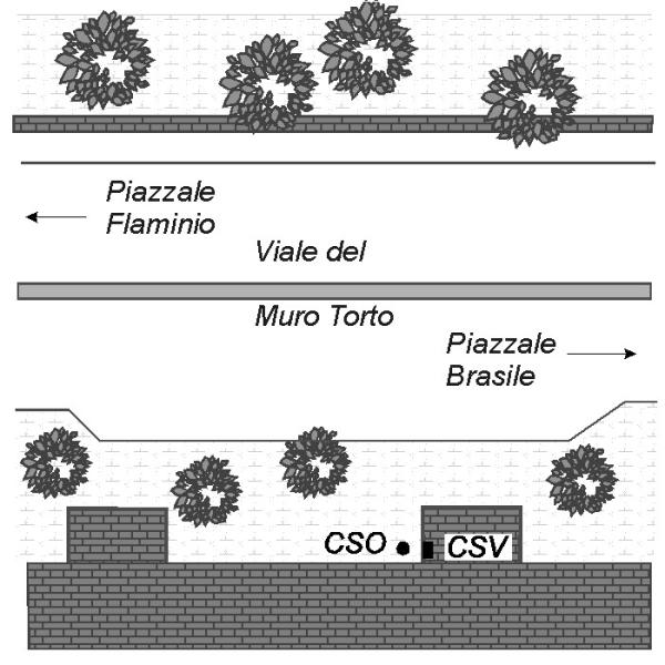 | Contrassegni | [{"simbolo_contrassegno":"P3","materializzazione":"(CSO) ( A ; NON MISURABILE ) Alla base del lato destro di una torretta delle vecchie mura di fronte a Villa Borghese"},{"simbolo_contrassegno":"V1","materializzazione":"(CSV) Mensola sullo stesso lato della Torretta, in corrispondenza del CSO"}] |
