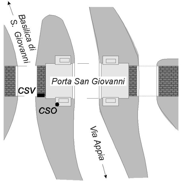 | Contrassegni | [{"simbolo_contrassegno":"B2","materializzazione":"(CSO) Disco di zinco impiombato sullo zoccolo del bugnato a sinistra della porta grande, entrando verso il centro"},{"simbolo_contrassegno":"V5","materializzazione":"(CSV) Caposaldo di altro Ente (Livellazione della Maggiore Estensione del Piano Regolatore di Roma del 1924) cementato sulla parete a sinistra della porta stessa"}] |