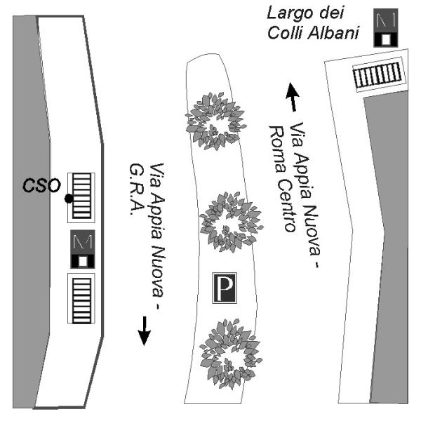 | Contrassegni | [{"simbolo_contrassegno":"B4","materializzazione":"(CSO) Sulla cornice superiore in pietra delle scale d'accesso alla stazione della Metropolitana \"Colli Albani\", sulla Via Appia Nuova a destra andando verso il G.R.A., subito dopo Via Menchini"}] |