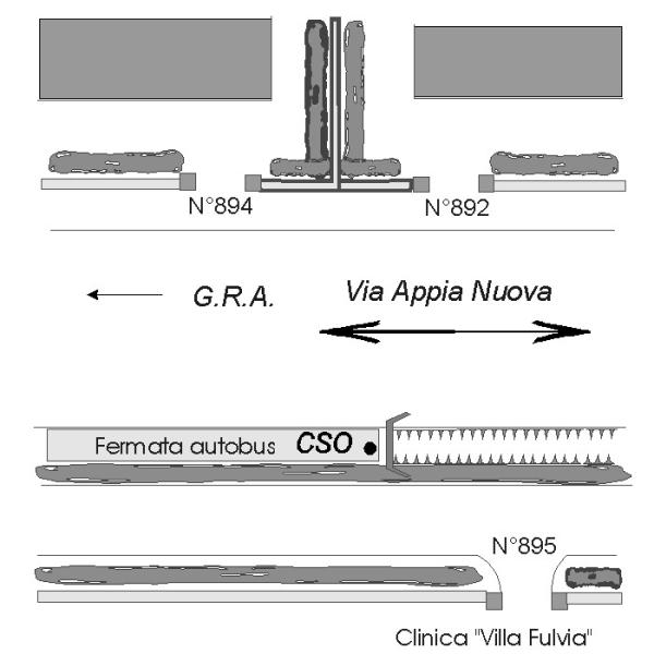 | Contrassegni | [{"simbolo_contrassegno":"B2","materializzazione":"(CSO) Sul marciapiede in cemento armato della fermata dell'autobus situata di fronte ai numeri civici 892 e 894 ed adiacente alla strada d'accesso alla casa di cura \"Villa Fulvia\" (N\u00b0 895), lato destro della Via Appia Nuova in direzione di Roma Centro"}] |