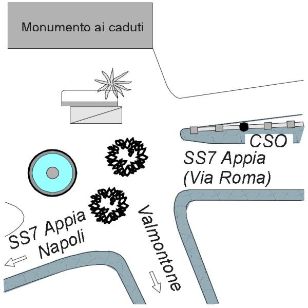 | Contrassegni | [{"simbolo_contrassegno":"B4","materializzazione":"(CSO) Bulloncino Inox di tipo Gps infisso sulla sommit\u00e0 del terzo pilastrino della balaustra di protezione del marciapiede di Via Roma, a sinistra andando verso Roma."}] |